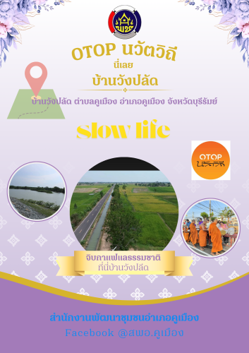 สำนักงานพัฒนาชุมชนอำเภอคูเมือง โดยนางนัฐกานต์ ศรีทอง พัฒนาการอำเภอคูเมือง ประชาสัมพันธ์ภาพ Infographic ชุมชนท่องเที่ยว OTOP นวัตวิถี บ้านวังปลัด หมู่ที่ 3 ต.คูเมือง อ.คูเมือง จ.บุรีรัมย์ เพื่อเชิญชวนท่องเที่ยวเชิงธรรมชาติที่บ้านวังปลัด ตำบลคูเมือง อำเภอคูเมือง จังหวัดบุรีรัมย์